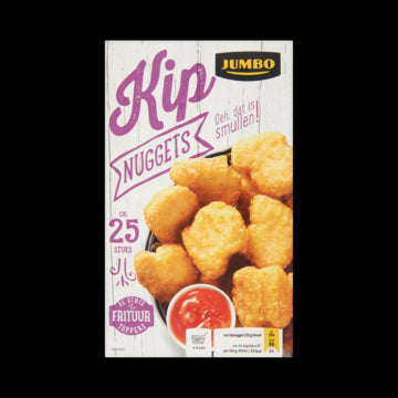 Kippenseparatorvlees 54%, TARWEbloem, maïsmeel, water, raapzaadolie, TARWEgluten, TARWEzetmeel, zout, rijsmiddelen: E450 en E500, specerijen (zwarte peper, witte peper), natuurlijk aroma (SELDERIJ), dextrose, gist, E = door EU goedgekeurde hulpstof.